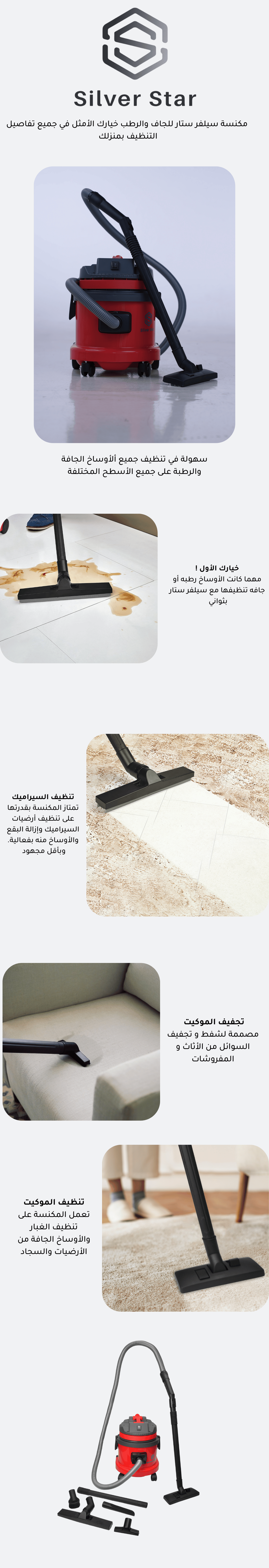 - ابتكار سعودي رائد: نحن أول من قدّم هذا المفهوم المتكامل للسوق السعودي. تم تصميم كل جزء في سيلفر ستار ليلائم بيوتنا، من تنظيف السيراميك والمجالس إلى التعامل مع أصعب التحديات اليومية. هذا هو ابتكارنا الذي نضعه بين أيديكم.